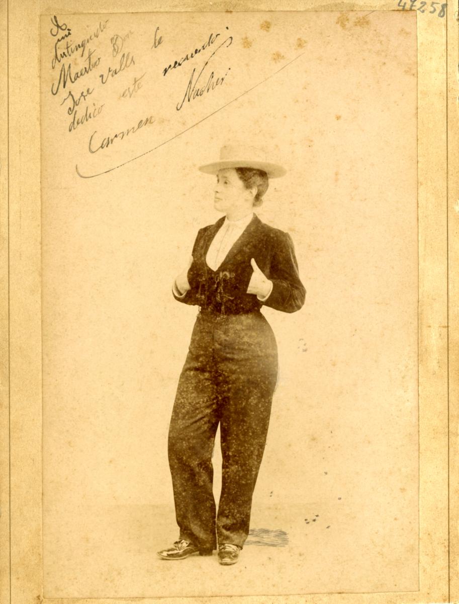 Durant les primeres dècades del segle XX va ser molt habitual que les dones que es dedicaven a la cançó popular aparegueren vestides d'homes als materials gràfics. D'una banda, era una pràctica destinada al gaudi de la mirada masculina, ja que la roba d'home deixava vore millor les formes del cos femení. D'altra, oferiren noves possibilitats d'interpretació de les pràctiques socials i estètiques associades a les dones.