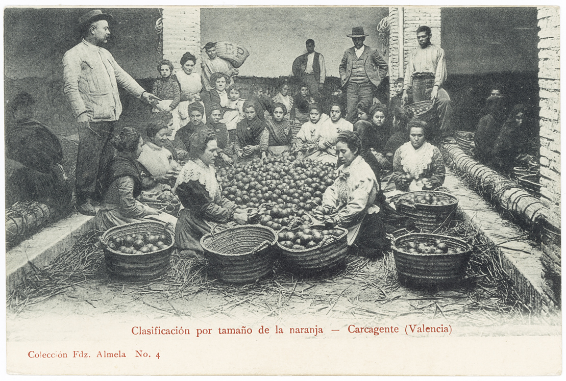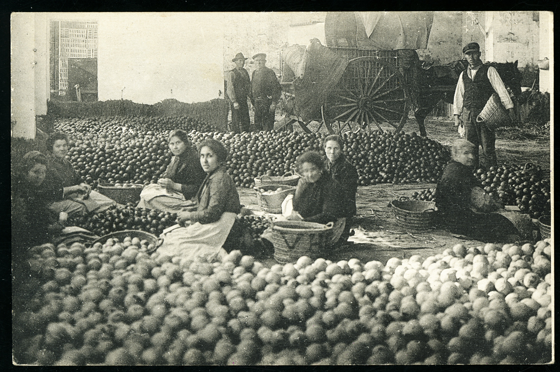 Igualment que als safarejos, tant als magatzems de fruites com de panses hi trobem a dones en treballs col·lectius. L'oralitat cantada era una de les formes amb les quals es transmetien informacions i es gestionaven els conflictes. Les fotografies mostren la prevalença femenina en aquests àmbits laborals.