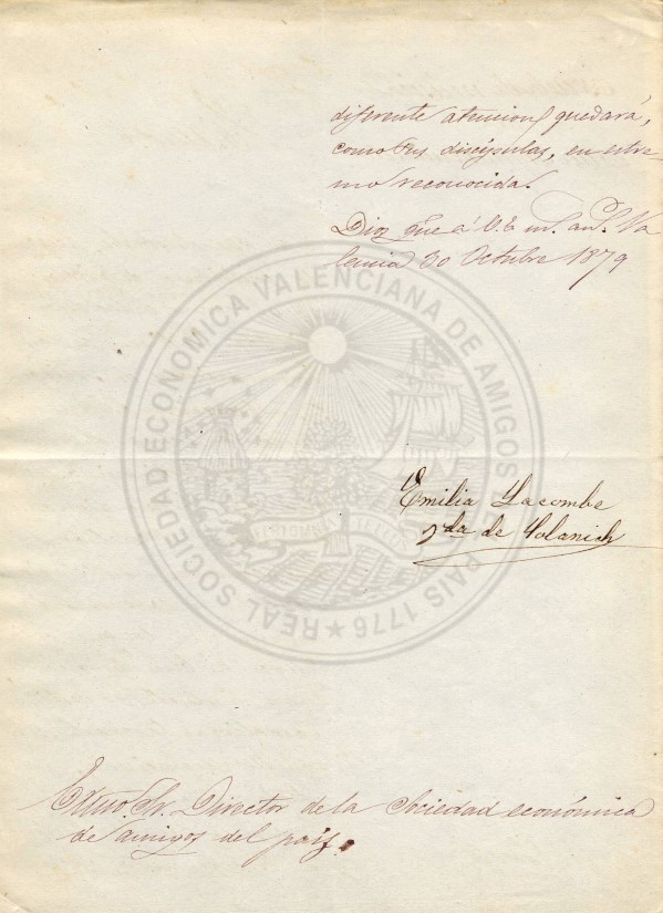 Carta signada per la professora de música municipal Emilia Lacombe