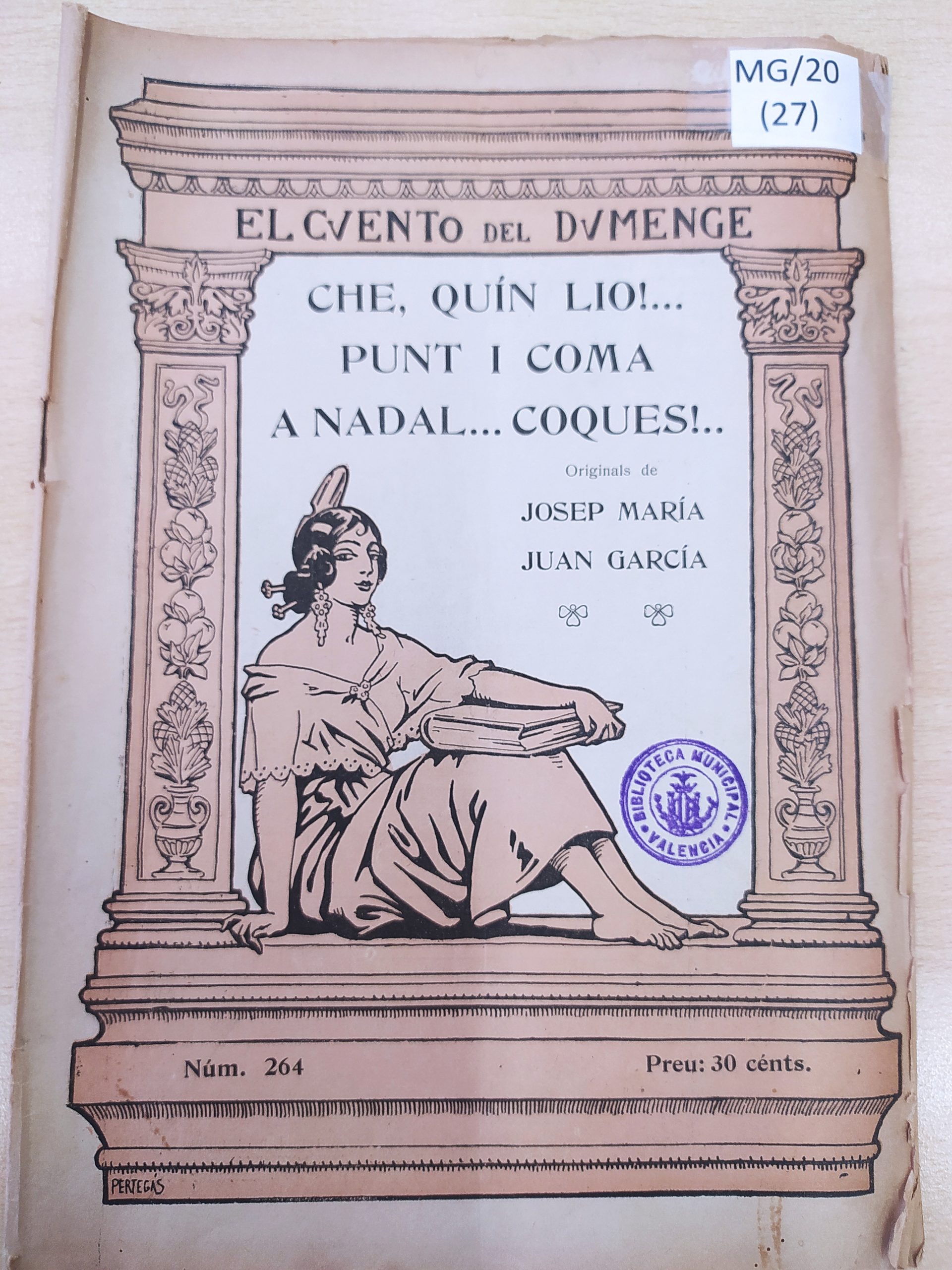 Portada d'estil modernista de diversos sainets de l'autor Josep María Juan, especialista en el món de les músiques escèniques populars de principi del segle XX. La col·lecció d'El Cuento del Dumenge' fou una de les plataformes més importants de difusió del valencianisme d'aquella època.