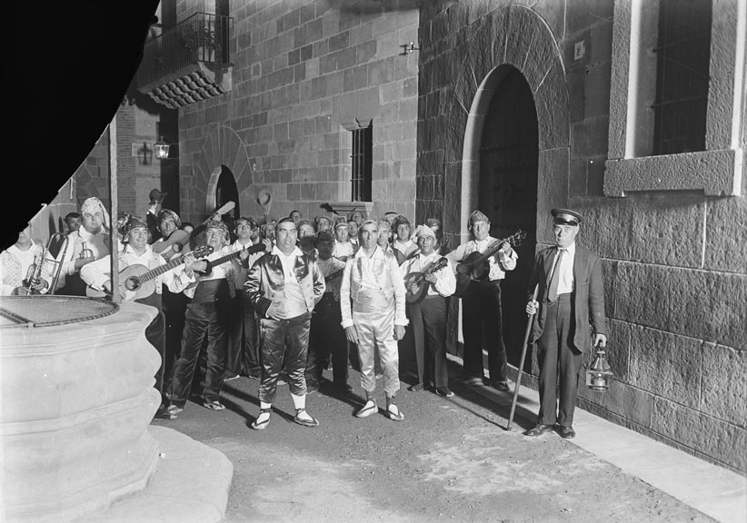 Retrat d'una estudiantina valenciana a Casa València de Barcelona. Malgrat que la dona representava la Regió de forma simbòlica, els músics que interpretaven esta representació eren en la majoris d'ocasions, hòmens.