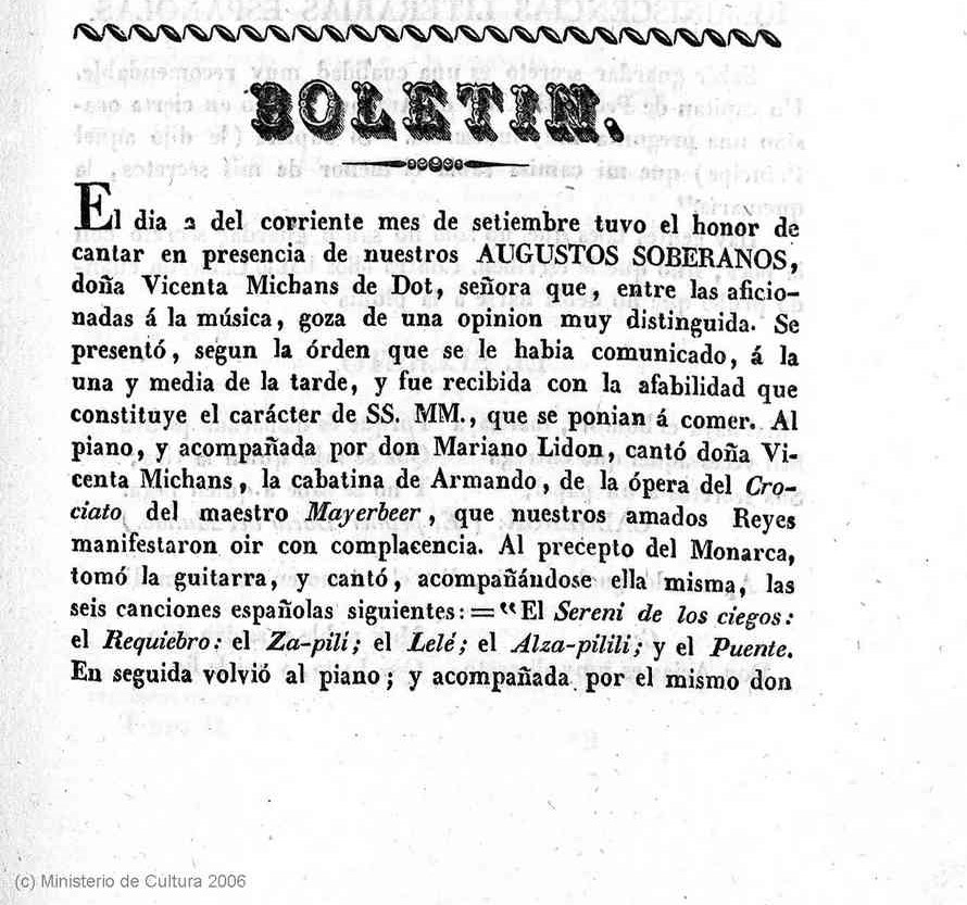 Cantant, guitarrista i pianista. Filla del pintor de cambra real, va estudiar a Madrid, destacant com a cantant. Realitzava concerts en el saló de sa casa i va arribar a actuar davant els monarques espanyols, segons dicta la notícia que trobareu a la dreta.